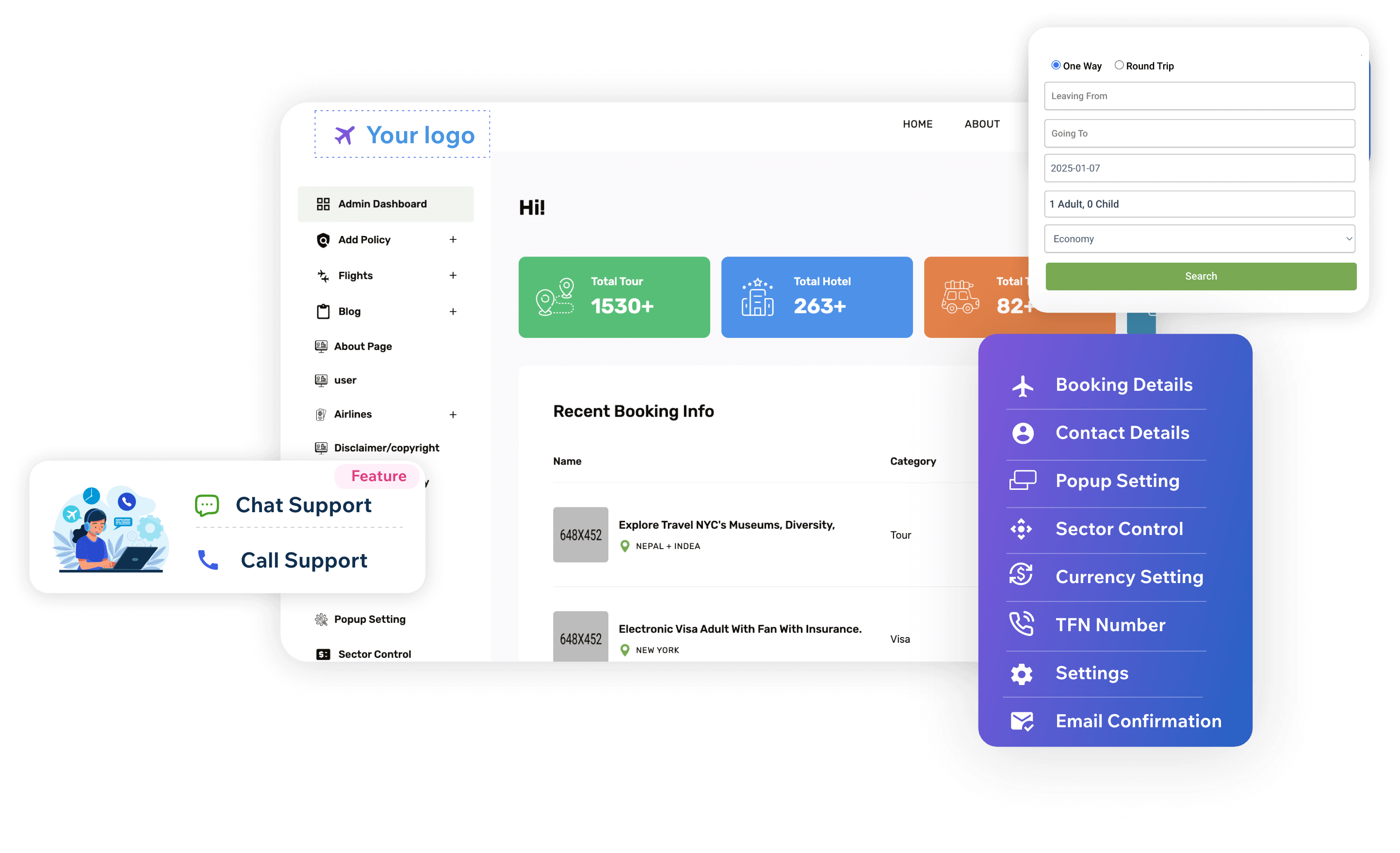 A White Label Travel gateway is pre-configured software for online travel businesses. The API for online bookings/reservations is already integrated in the White Label Travel portal, which reduces the cost of your travel portal development by eliminating the need to purchase the API separately. This program allows you to make bookings, reservations, bill payments, and manage all of your bookings much like a custom travel site. A White Label Travel Portal is ideal for new entrants into the travel and tourism business.